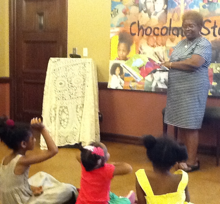 Chocolate Storytime kids and guests learned the words of the African American National Anthem, “Lift Every Voice and Sing” and were inspired by Spike and Tonya Lee’s story, “Giant Steps to Change the World.”