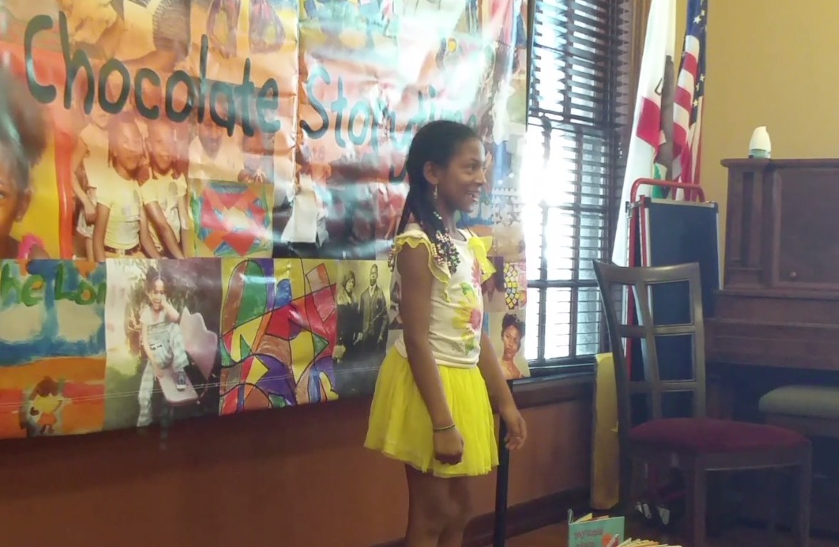 La Pintoresca Library had a “pocket poem” writing contest for last month’s National Poetry Month, observed during the month of April, and our very own Alicia Randall won for the elementary school division! For this month’s May 2016 Chocolate Storytime, Alicia recited her poem for the guests. See Alicia’s winning poem, “When I Turned into a Dog,” below:
