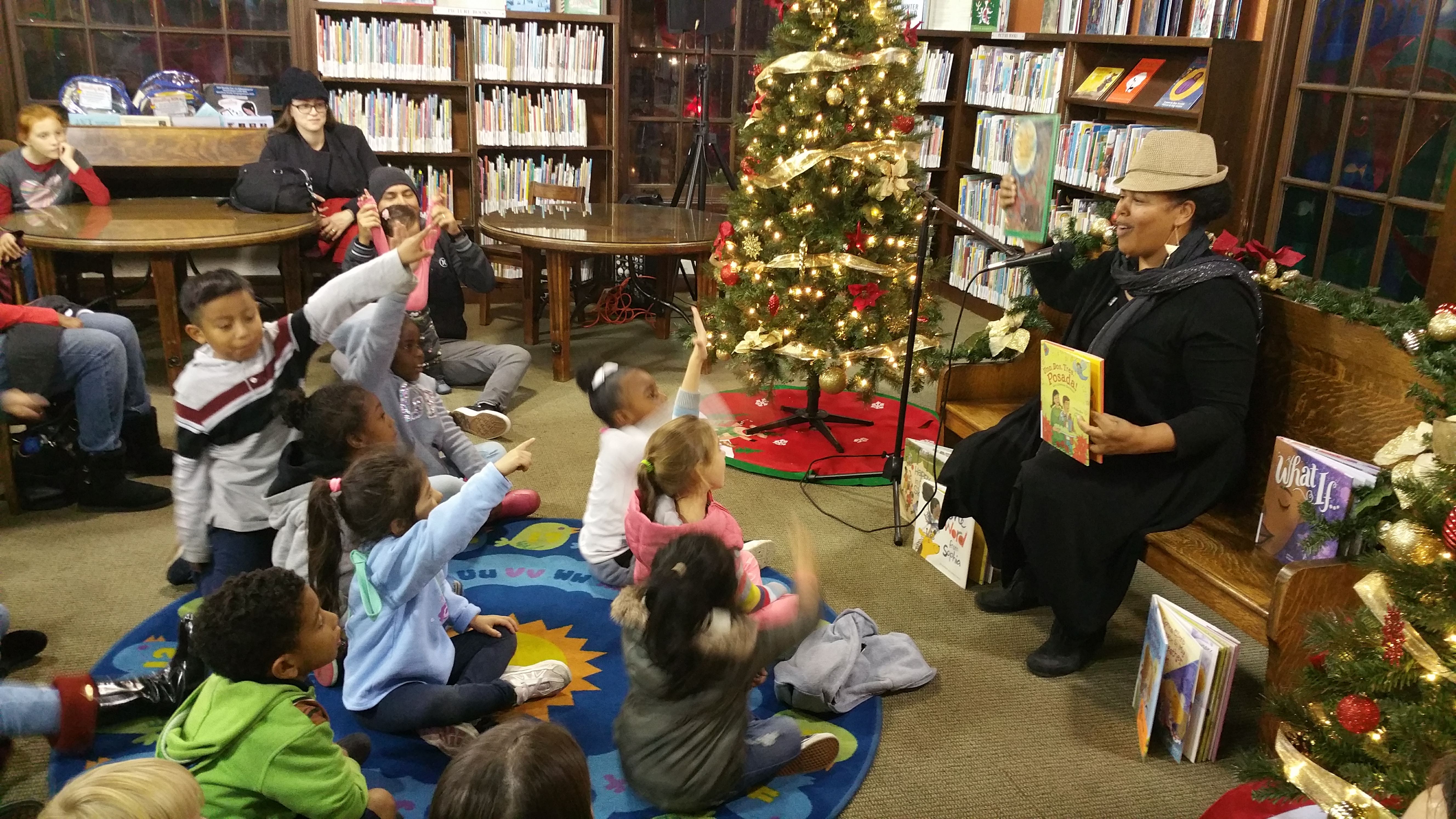 The La Pintoresca Tree Lighting Ceremony was held on Friday, November 30, 2018, coinciding with our regularly scheduled monthly Chocolate Storytime. Rather than holding the program separately, Chocolate Storytime was thoughtfully incorporated into the evening’s festivities, creating a seamless experience of storytelling, crafts, food, and celebration for families gathered at the library.