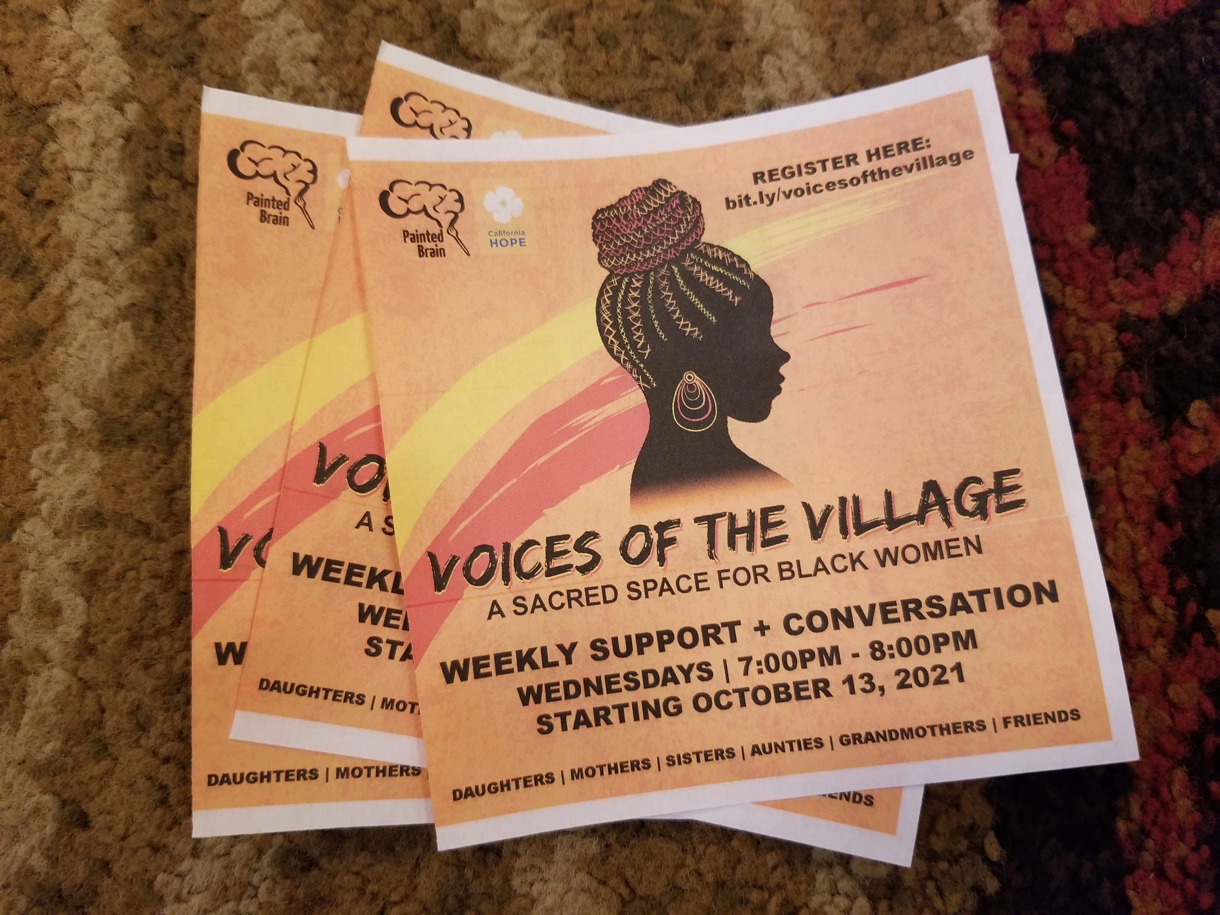 The moms also shared valuable information about a weekly support and conversation group for Black women called Voice of the Village: A Sacred Space for Black Women. This supportive gathering is hosted by Painted Brain every Wednesday from 7 PM to 8 PM, starting October 13, 2021. It’s a powerful space to connect, share, and grow together.