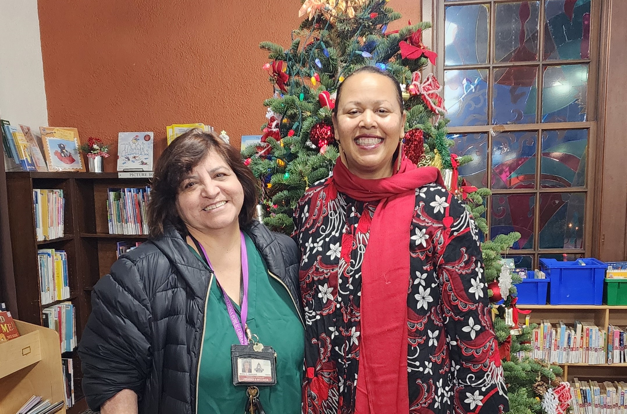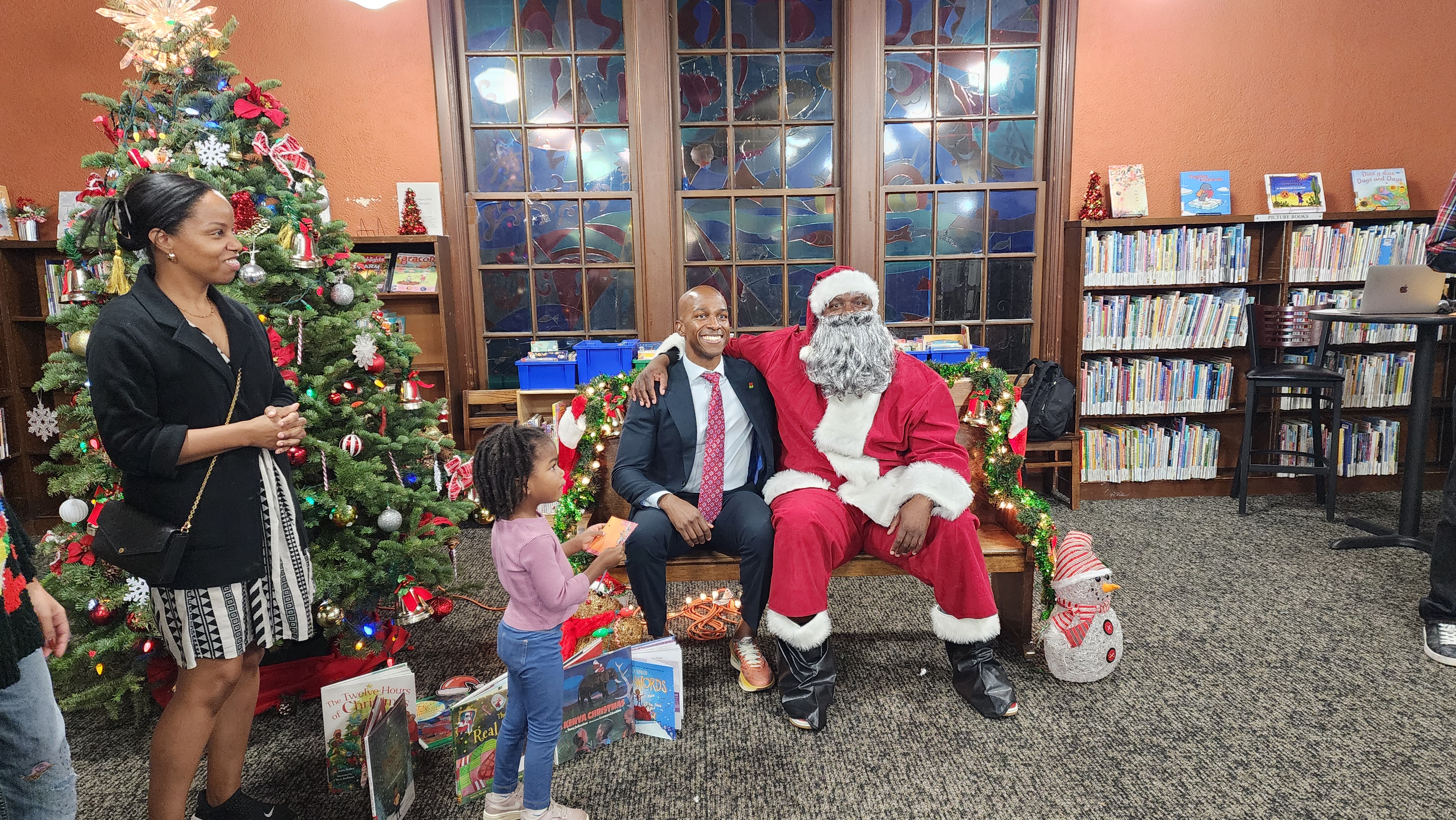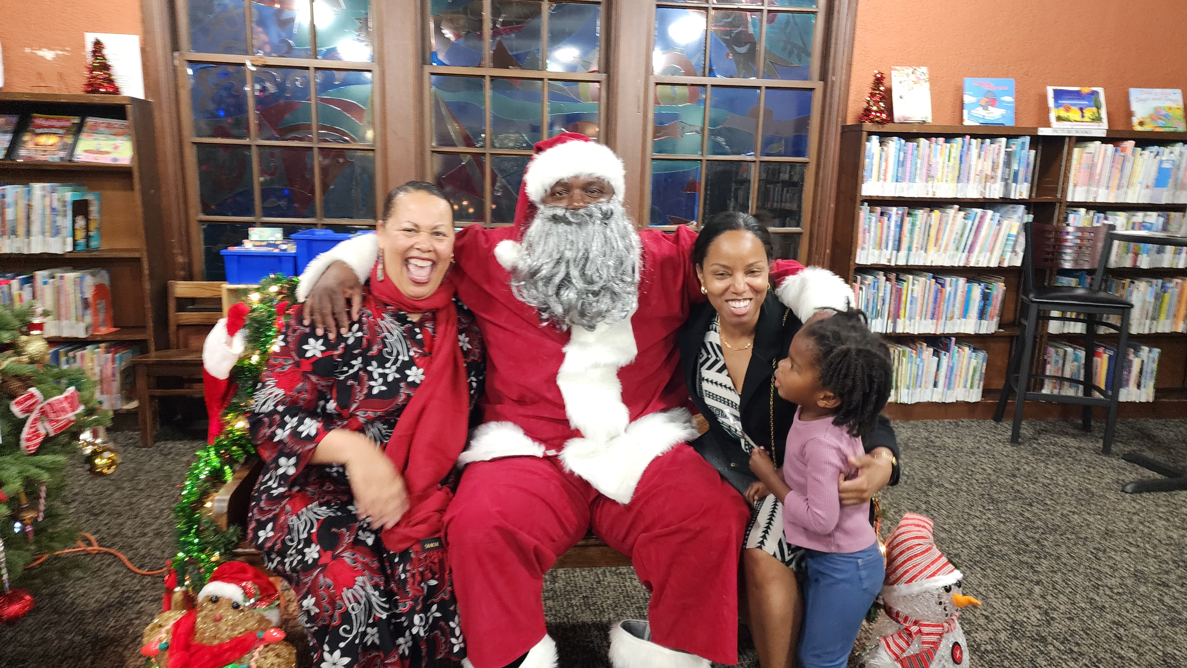 Warm, soulful Christmas music flowed throughout the evening thanks to a kind and gracious brotha from the Teen Center, who is also a talented DJ in his spare time. He supported the sound throughout the program, curated a joyful soundtrack that included the Jackson Five’s “Santa Claus Is Coming to Town,” and made sure the microphone was set up just right for those of us seated on the traditional Santa bench, a familiar fixture that returns year after year. Tamales and champurrado were shared, the lights outside and decorations inside were beautiful, and the atmosphere reflected care, generosity, and welcome.