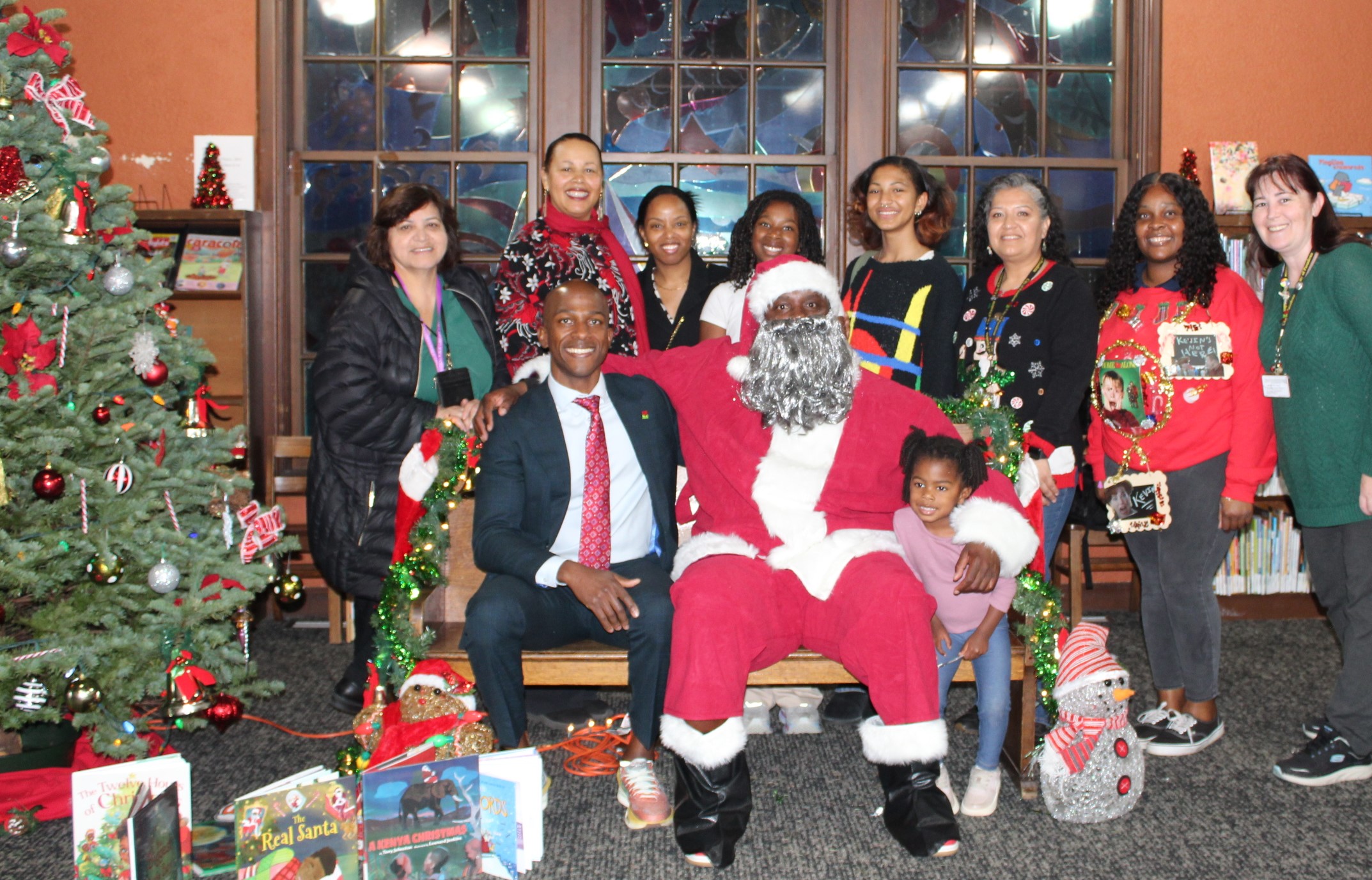 Warm, soulful Christmas music flowed throughout the evening thanks to a kind and gracious brotha from the Teen Center, who is also a talented DJ in his spare time. He supported the sound throughout the program, curated a joyful soundtrack that included the Jackson Five’s “Santa Claus Is Coming to Town,” and made sure the microphone was set up just right for those of us seated on the traditional Santa bench, a familiar fixture that returns year after year. Tamales and champurrado were shared, the lights outside and decorations inside were beautiful, and the atmosphere reflected care, generosity, and welcome.