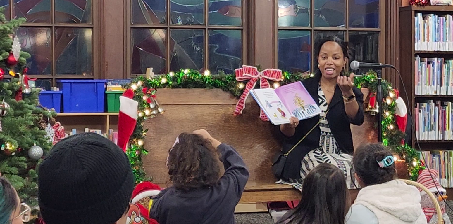 The guest reader for the evening was Dr. Tara Gomez-Hampton, who brought the story to life engaging the children through thoughtful questions, open conversation, allowing space for reflection. She led with gentle insight and care, creating a welcoming space where children felt seen, heard, and valued.